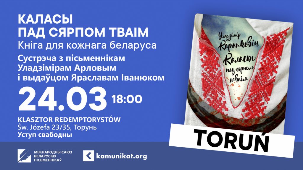 24 сакавіка ў Торуні адбудзецца прэзентацыя непадцэнзурнага выдання кнігі “Каласы пад сярпом тваім” Уладзіміра Караткевіча. У сустрэчы ўдзельнічаюць пісьменнік Уладзімір Арлоў і выдавец Яраслаў Іванюк.
