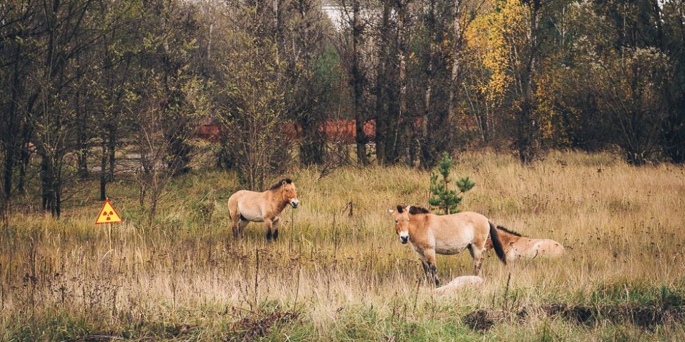 Загалоўнае фота Michael Kötter / Flickr. Коні ў Чарнобыльскай зоне адчужэння на фоне ахоўнага саркафага